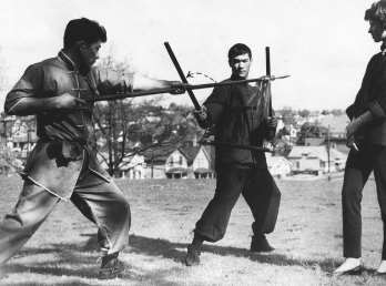 After Bruce Lee moved to Oakland in late 1964, he opened up his second school, the Jun Fan Gung Fu Institute of Oakland with James Lee. James Lee would be his second assistant instructor. The martial arts community in San Francisco’s Chinatown were not happy with Bruce teaching non-Chinese students. They were so angry that they challenged Bruce to a fight with Wong Jack Man. If Bruce were to lose, he would have to close the school. Of course, Bruce won. While this was unfortunate, it made Bruce realize the importance of fitness conditioning and the limitations of his current art. For this, he decided to modify his original curriculum. This new curriculum was less structured and incorporated such things as the striking from boxing and the footwork from fencing for mobility. So, if you think of that circle again, you can think of this modified Jun Fan Gung Fu curriculum in Oakland completing another ¼ of the circle.