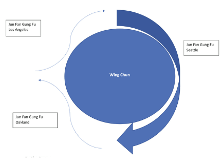 Bruce Lee took five years of Wing Chun in Hong Kong before moving to Seattle in 1959. So, it is not surprising that the very core of the original Jun Fan curriculum in Seattle was Wing Chun. But it was a modified version of Wing Chun that would be the original Jun Fan Gung Fu curriculum. So, if you think of a circle, the center is Wing Chun, with the original Jun Fan Gung Fu in Seattle completing ½ of the circle.